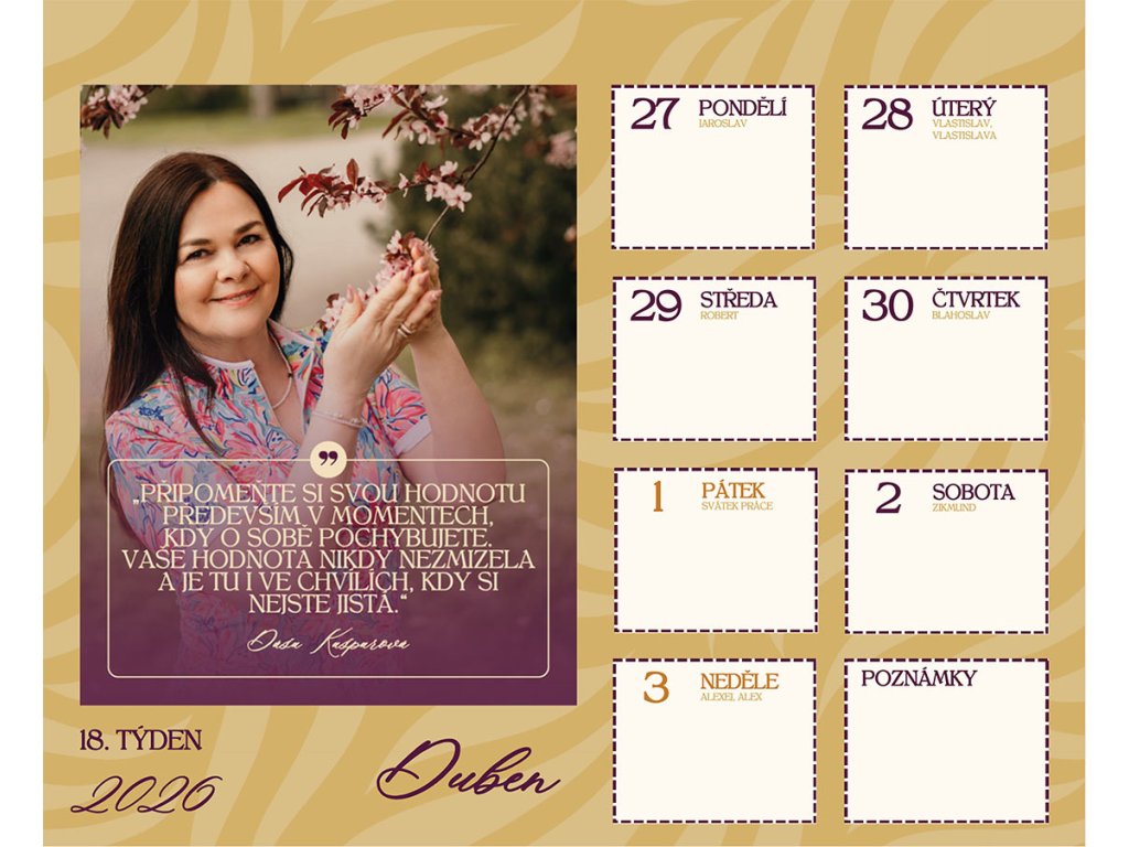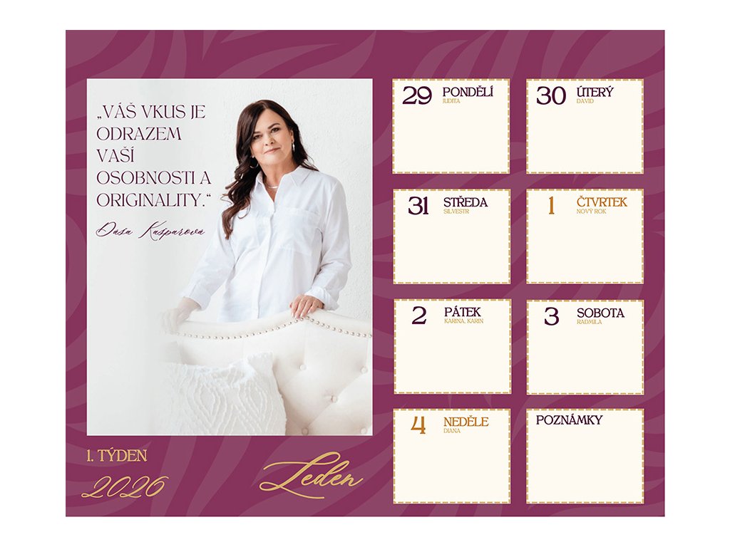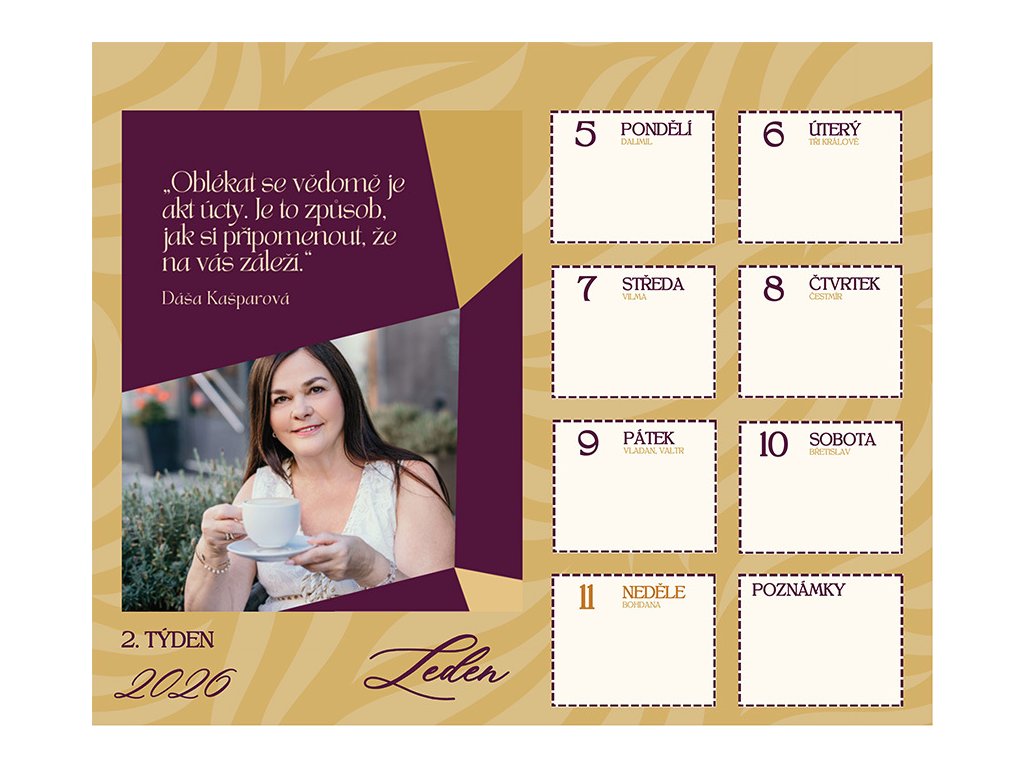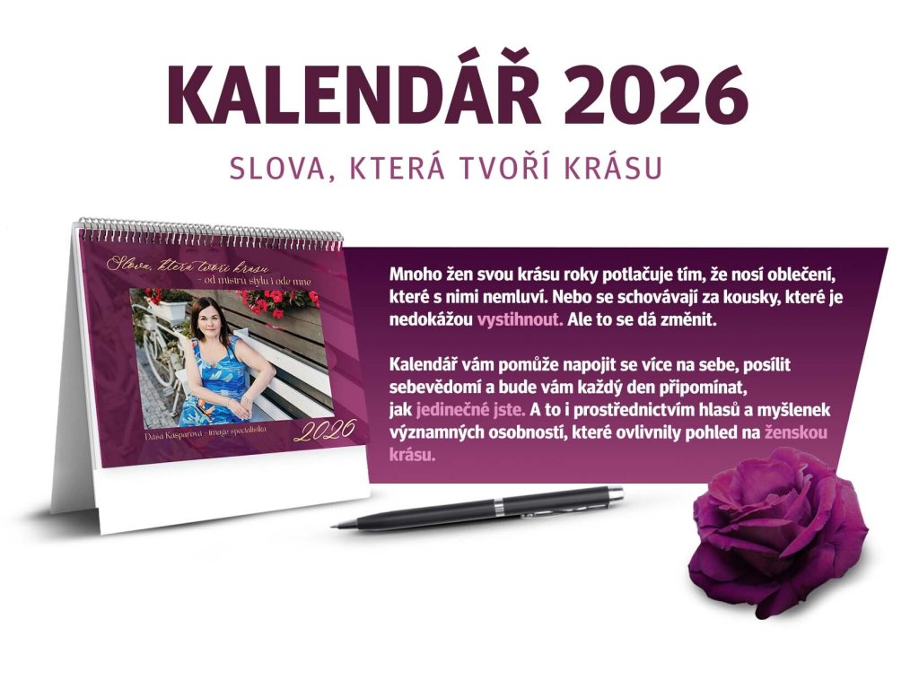 Limitovaná edice kalendáře pro rok 2026 od Dáši Kašparové – navazující na celoživotní zkušenosti sepsané v knize 7 + 1 Mýty o oblékání a image poradenství.